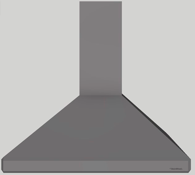 Click on the models for a list of our base model numbers for standard sizes; simply select the model you need, and then specify the finish (painted or stainless steel.) Not available in real brass, real copper, or hammered copper. Recommended mounting height is 24" from the cooking surface. Shown with matching wall mount duct cover (sold separately), available in standard sizes for 7', 8', and 9' ceiling heights or in custom sizes. All Vent-A-Hood products are suitable for use in damp locations (outdoor applications such as a covered patio) when installed in a GFCI protected branch circuit.